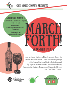 Savour the tastes, sights, sounds of Italy at "March Forth, a Dinner Party" presented by One Voice Chorus!